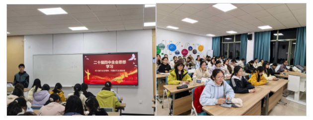 学院党委牢牢抓住“关键少数”,以率先学、深入讲引领“绝大多数”,凝聚思想共识。10月29日,学院党委理论学习中心组第一时间召开扩大会议,专题研学全会精神,班子成员带头领学、深入研讨,准确把握核心要义与实践要求。10月31日至11月4日,学院党委领导班子成员全员主动下沉一线,实现新生班级与基层党支部宣讲“全覆盖”。摒弃照本宣科,采用“小切口、面对面”的互动方式,结合国情省情校情,将宏大的制度叙事转化为贴近师生的生动讲解,有效推动了全会精神入脑入心,夯实了团结奋斗的共同思想基础。